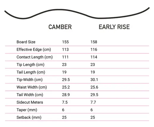 - A camber profile provides you with great pop and serious edge hold for your high speed carving rides