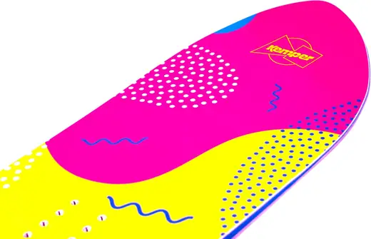 The Kemper SR Surf Rider is a top of the line snowboard designed for all mountain, trips into powder land and all your favorite tricks in the park. You get a wide variety of stance options for mounting the bindings with the 2×4 system. With its riding characteristics and a flex of 7, this Kemper snowboard is recommended for intermediates and advanced riders. The medium stiffness of this board brings you a balance of maneuverability and stability at speed.