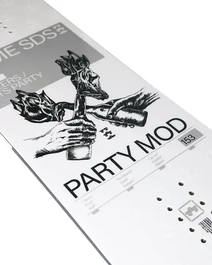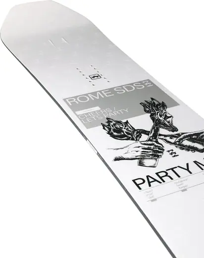 The Rome Party Mod is a versatile snowboard designed for all mountain and trips into powder land. You get a wide variety of stance options for mounting the bindings with the 2×4 system. With its riding characteristics and a flex of 6, this Rome snowboard is recommended for intermediates. The medium stiffness of this board brings you a balance of maneuverability and stability at speed.