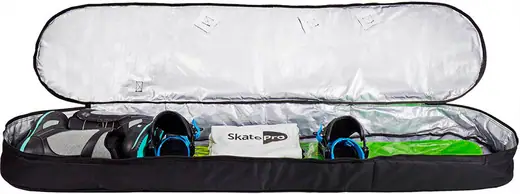 Designed for one snowboard complete with bindings. With boxed ends, a long zipper, shoulder strap, and gear-straps. Protects and keeps track of Snowboard whilst in storage and during transport.